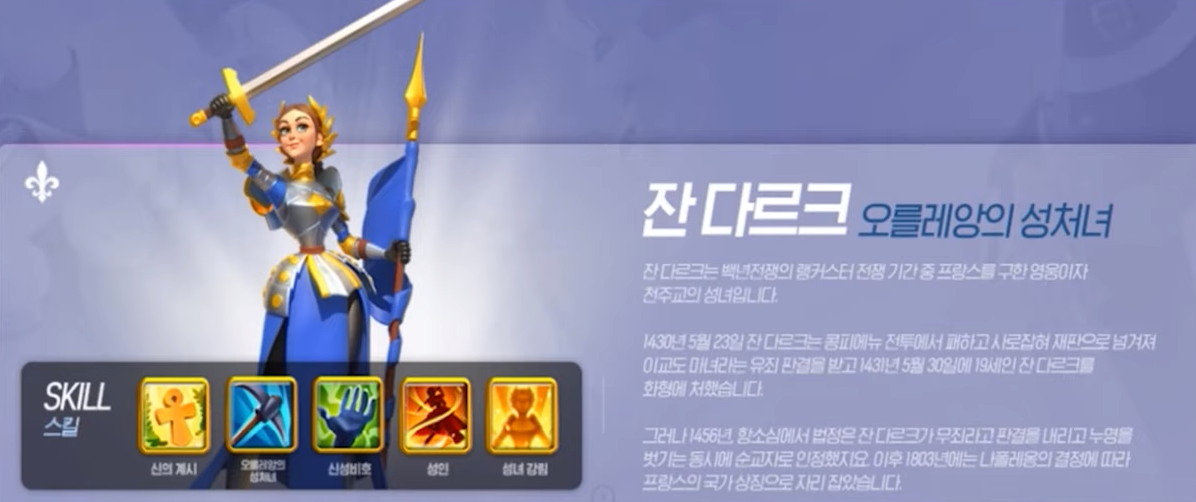 주 사령관으로 봤을 때는 좀 애매하고 잘 사용이 안 되지만 부사령관으로는 어떤 제사는 과장보도 잘 어울리는 그런 제영 사령관이기 때문에 그래서 어떤 컨텐츠로 골고루 부사령관으로 사용했을때 골고루 사용할 수가 있고 부사령관 사용을 할 경우에는 찍어서 뭐 체질 관련해서도 사용을 할 수가 있어서 누구든지 이제 그 무과금유저는 잔다르크 하나 가지고 있으면은 여기저기 잘 사용을 할 수가 있기 때문에 3위로 선정을 하게 되었습니다